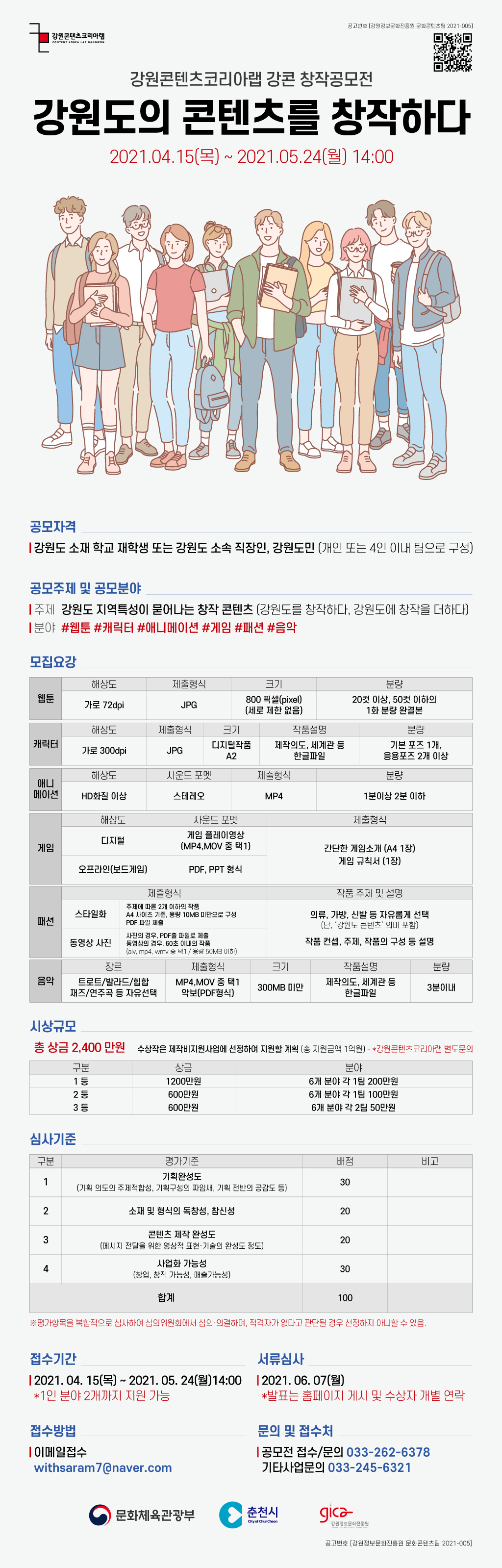 · 공모전 문의/접수 : 강콘 창작 공모전 사업운영팀 팀장 박유리