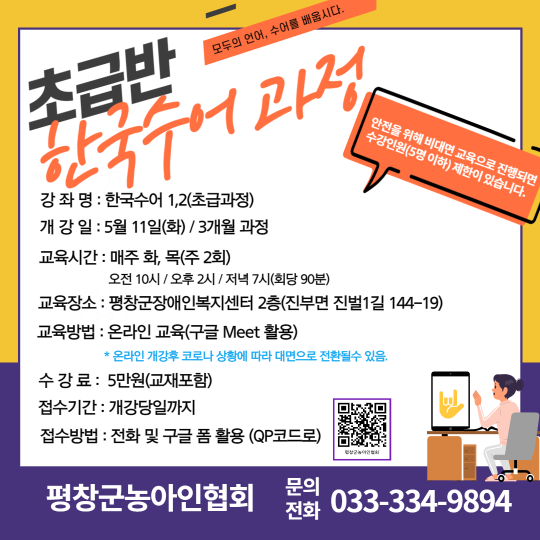 평창군농아인협회 수어교육안내