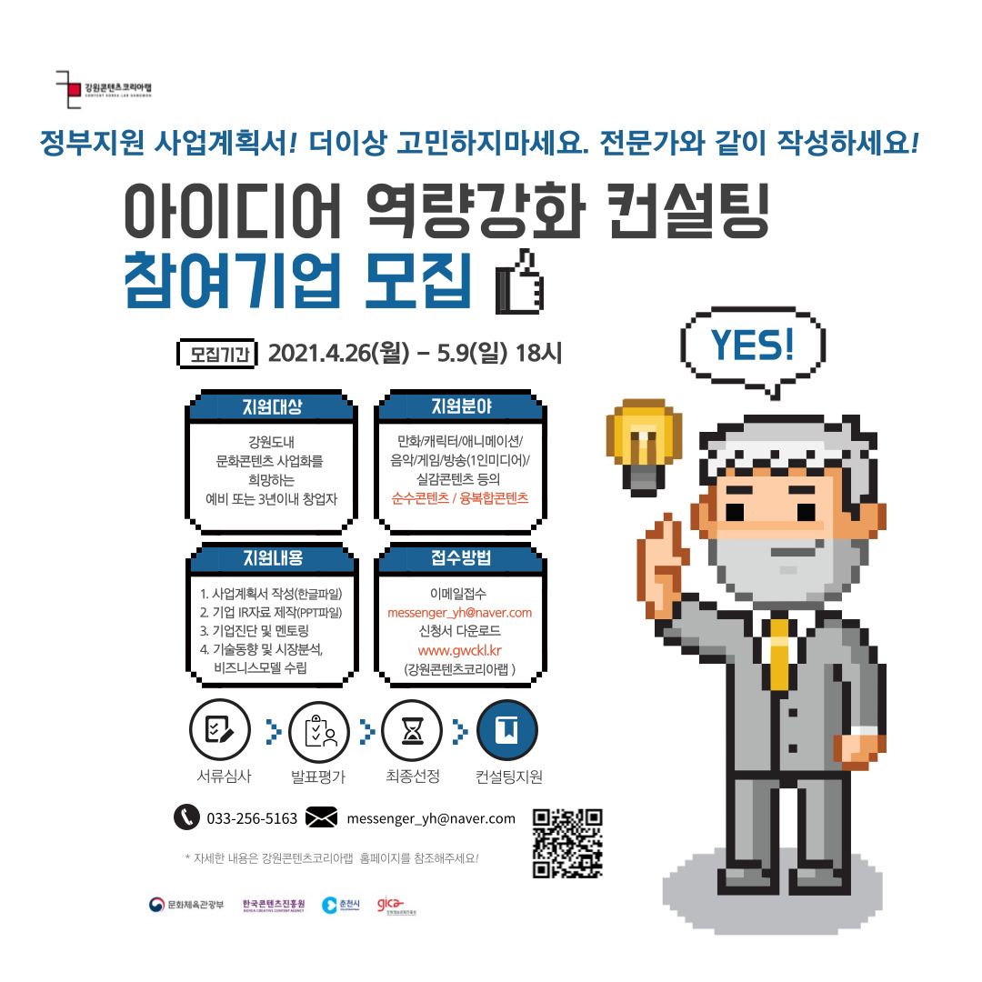 문의 : 033-256-5163 아이디어역량강화컨설팅 사업담당자