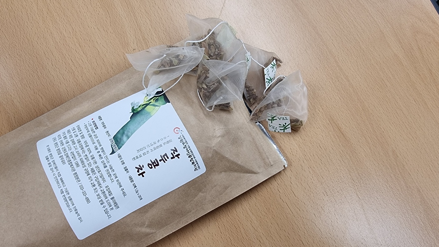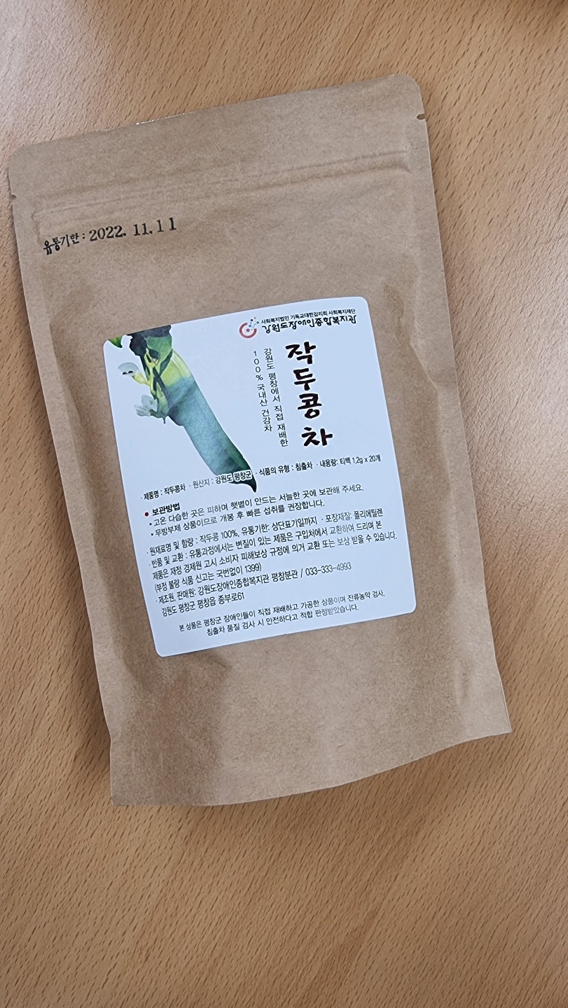 저희 복지관에서 진행하는 농업과 프로그램 이용자분들과 담당자가 열심히 직접!! 농사지어서 재배한 후 가공하여 만든 작두콩차를 판매하고 있습니다.