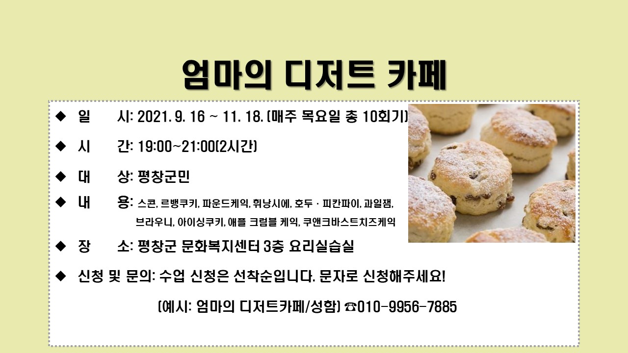 엄마의 디저트카페(선착순 10명) 모집마감되었습니다