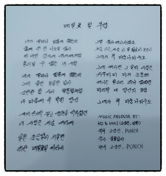 ** 아래 첨부된 사진은 이찬원 친필 가사 사진 입니다.