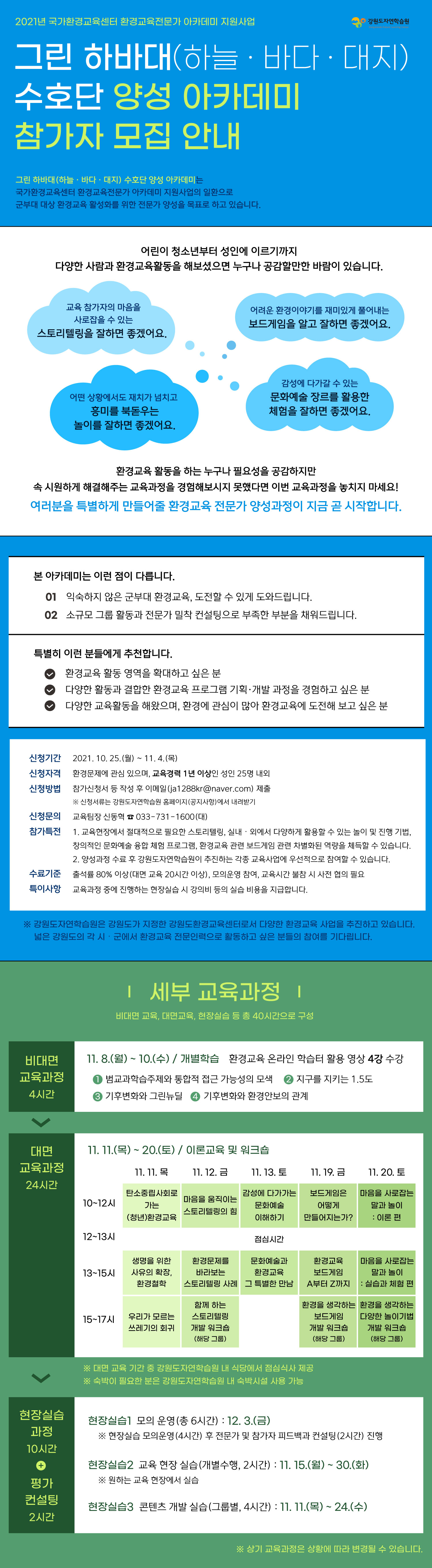 에서 군부대 환경교육전문가 양성을 위한 아카데미에 많은 관심과 지원 부탁드립니다