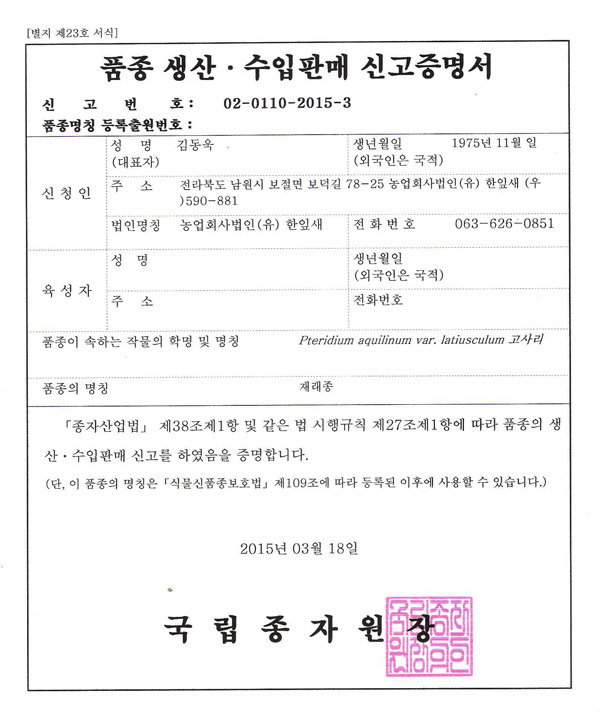 고사리재배는준비한 만큼, 교육받은 만큼 성공합니다.