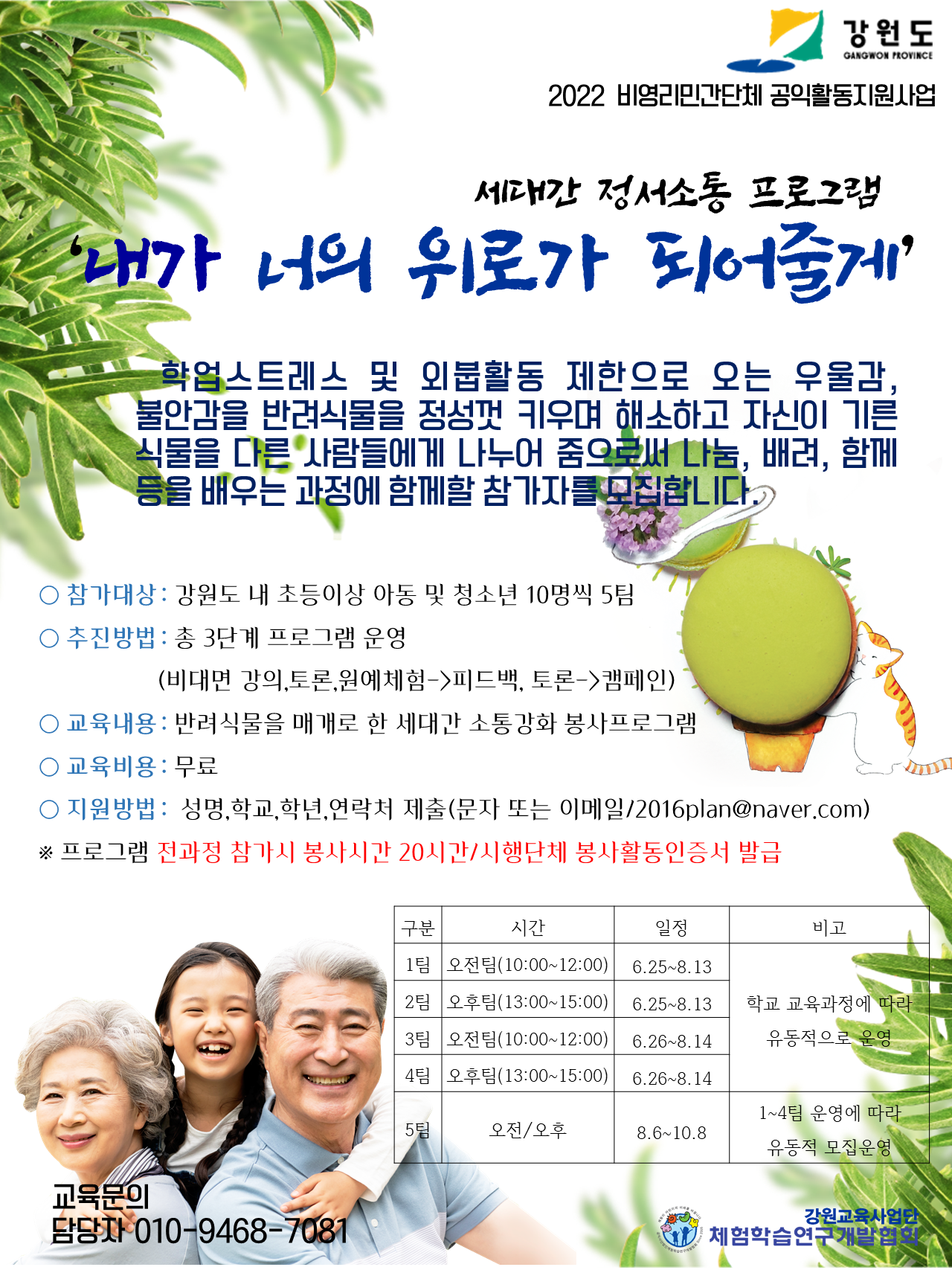 내 용 : 반려식물을 매개로 한 세대간 소통강화 봉사프로그램