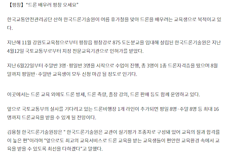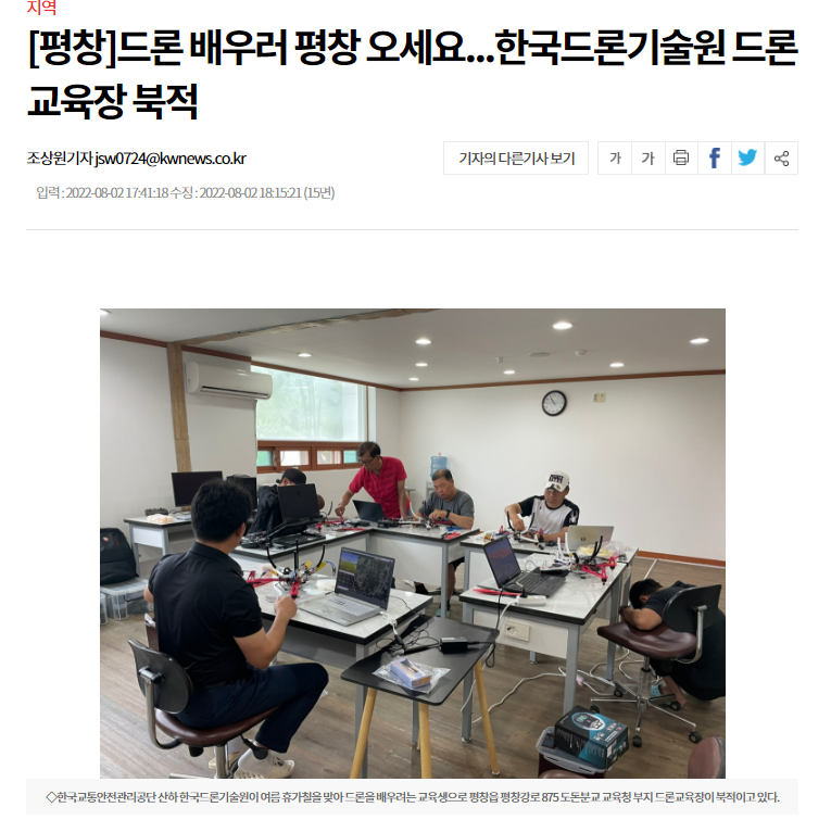 평창군 한국드론기술원이 '강원일보'에 소개되었습니다!