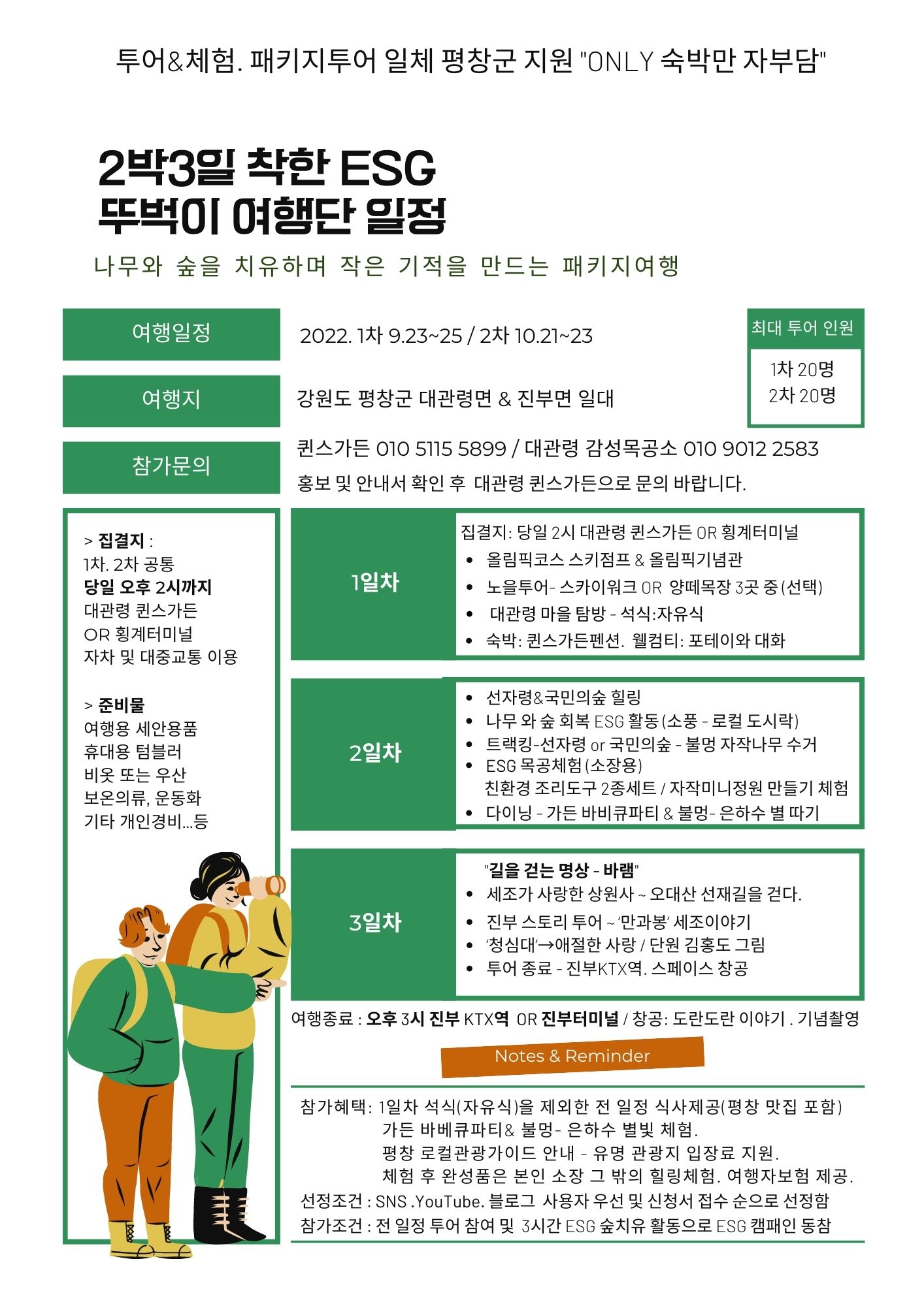 아름다운 여행 2박3일간의 ESG무료여행 신청자 모집
