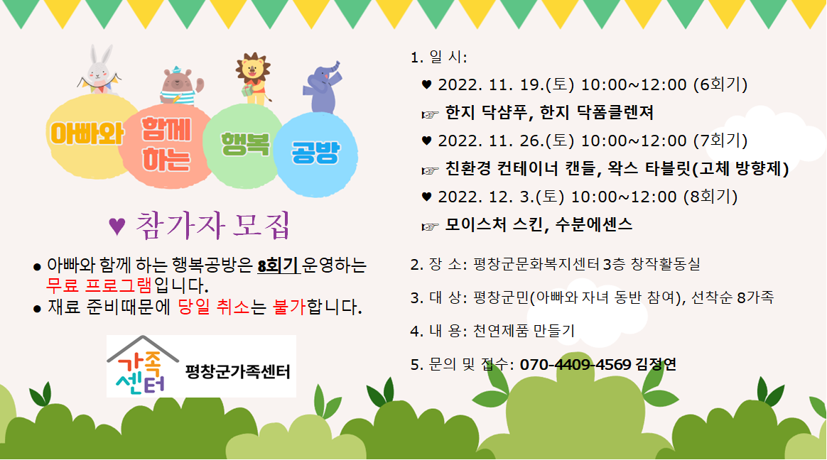 [평창군가족센터]아빠와 함께 하는 행복공방 프로그램 참가자 모집