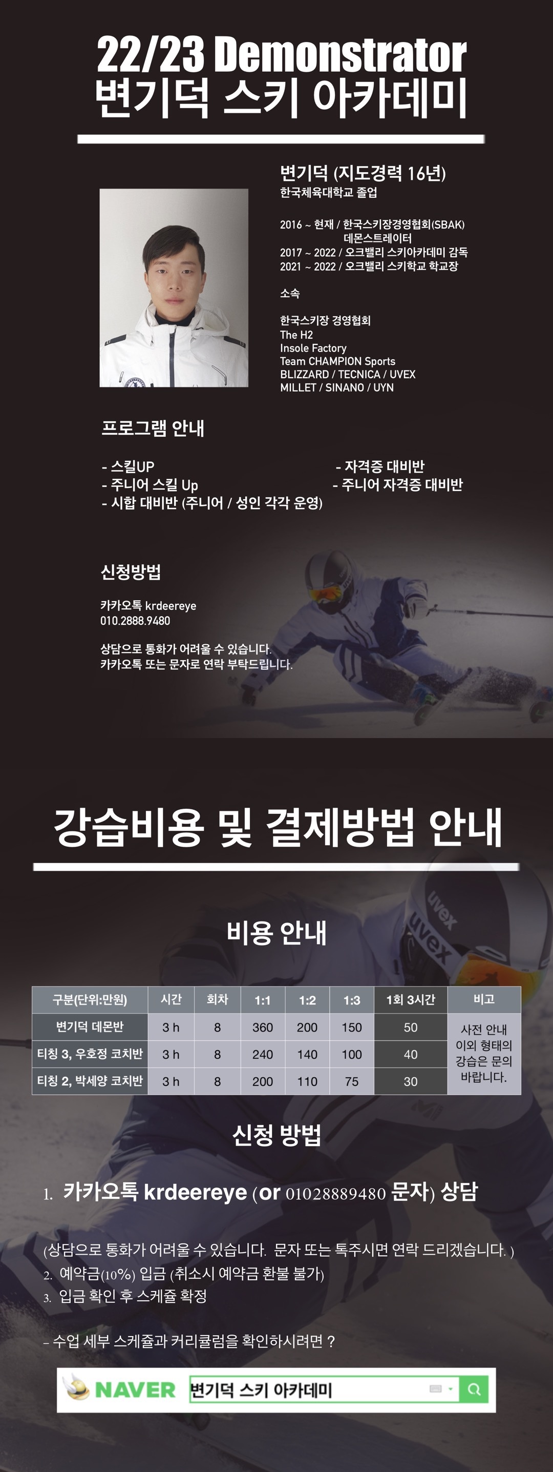 7년 연속 데몬스트레이터 자격을 유지하고있는 변기덕 데몬스트레이터의 스키아카데미!